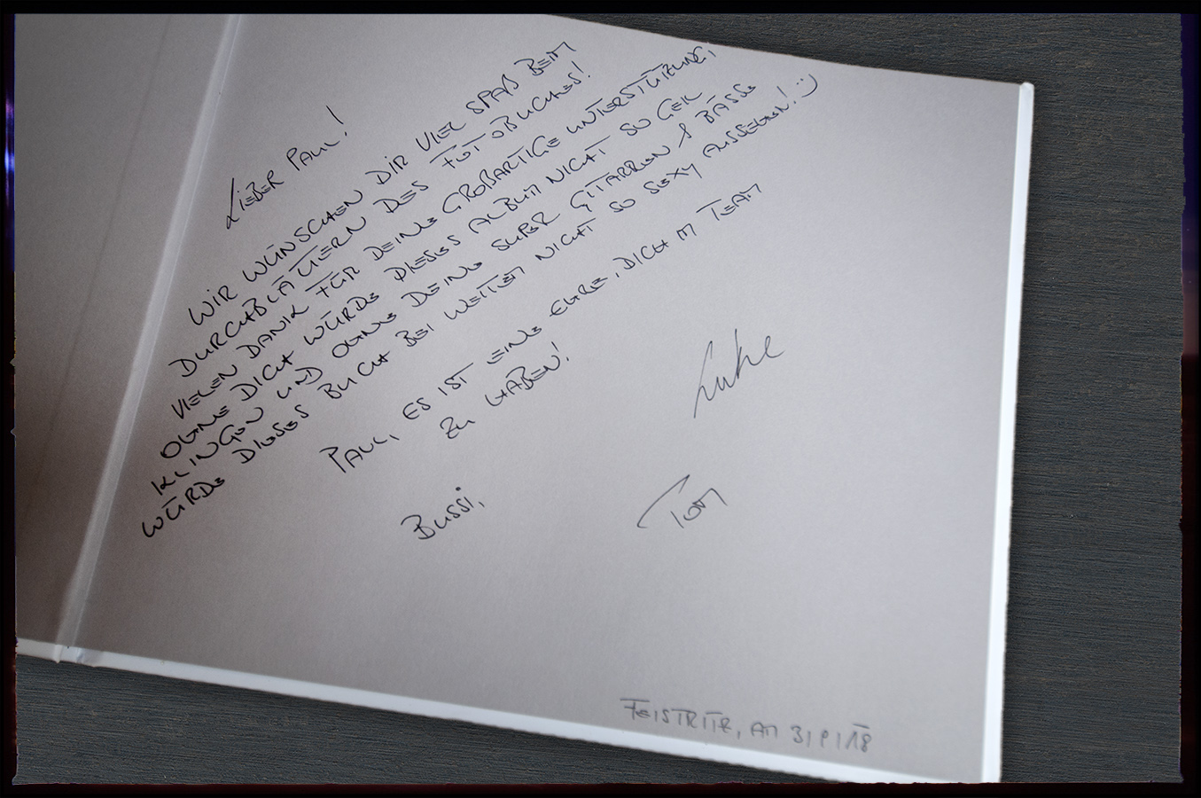 "Ich habe mir von Paul, nachdem ich seine Instrumente im Studio mehrmals spielen durfte, eine eigene Akustikgitarre bauen lassen und bin mit dem Ergebnis mehr als zufrieden. Die unendliche Leidenschaft, die er aufbringt und die Liebe zum Detail machen seine Instrumente einzigartig. Danke Paul, für dieses Meisterstück!" - Luke Andrews